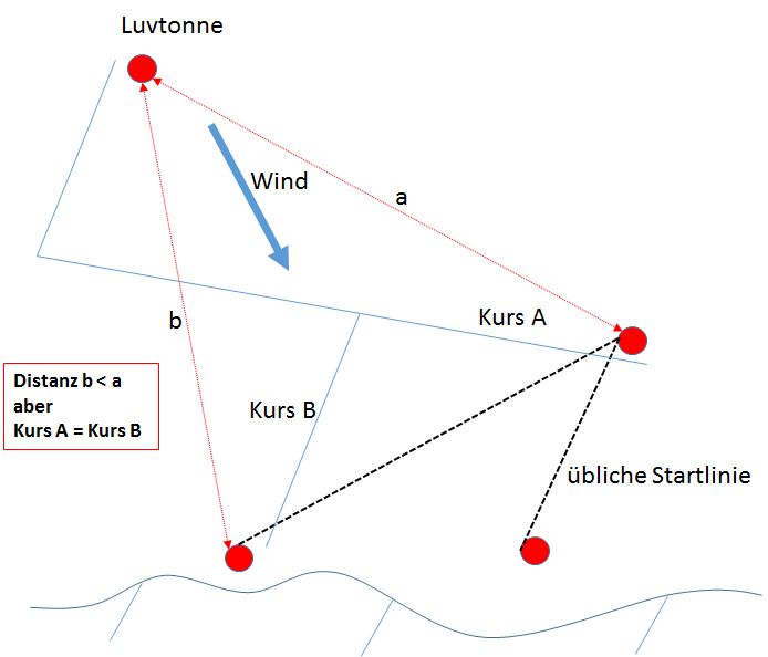 Die Luvtonne liegt immer rechts von der Startlinie, sagen wir mal, in Luv der rechten Starttonne.