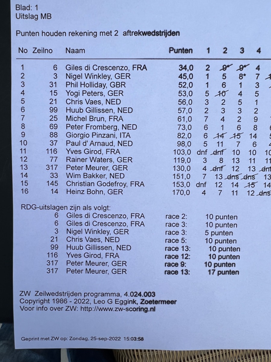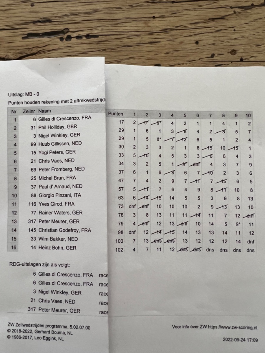Rainer ich bin ganz bei dir. Zwei Gruppen mit 16 Mann, absoluter Unsinn. Es kommen immer gute und schlechte Segler zusammen, ist bei allen Regatten so. Wenn wir Sturm gehabt hätten, hätte man besser zwei Gruppen gemacht, aber bei den Verhältnissen.