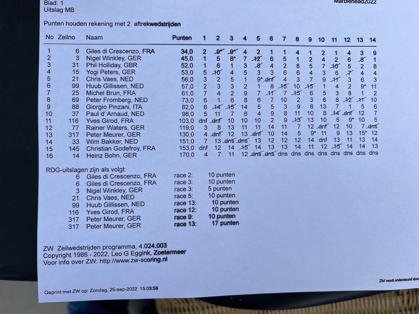 Ausgesprochen positiv gefällt mir, mit welcher Treffsicherheit die Kurse in Gouda von der Wettfahrtleitung ausgelegt werden. Das ist ohne Fehl und Tadel!