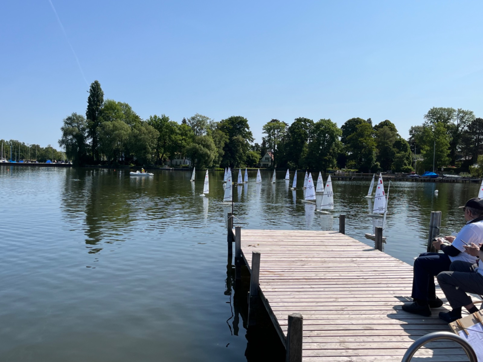 Gern möchte ich mich im Namen aller Teilnehmerinnen und Teilnehmer bei den Organisatoren für die hervorragende Durchführung der Segelregatta im Verein HYC bedanken. Die Veranstaltung war ein voller Erfolg und hat allen Beteiligten viel Freude bereitet.Besonders hervorheben möchte ich die Professionalität und das Engagement der Veranstalter, insbesondere Meike und Tom und natürlich das ganze Wettfahrtleiterteam, die dazu beigetragen haben, dass alles reibungslos verlief. Wir alle haben die Veranstaltung sehr genossen und waren beeindruckt von den insgesamt fairen Segelmöglichkeiten.Die Wettfahrtleitung entschied sich aufgrund der Verhältnisse und der Sichtmöglichkeiten dafür, die 23 Segelnden in 2 Gruppen einzuteilen. Dies trug wesentlich zum stressfreien Segeln bei.Trotz der schwierigen Windverhältnisse mit schwachen, teilweise sehr böigen Winden gab es spannende und faire Wettfahrten. Auf dem Steg ging es recht harmonisch zu.Am Samstag kam noch das B und A Segel zum Einsatz, Sonntag dann nur noch das A-Segel. Der schwache Wind stellte dann die Segelnden und die Wettfahrtleitung vor schwierige Aufgaben. Trotzdem konnten noch 5 Durchgänge gesegelt werden. Am Ende standen 12 Durchgänge mit jeweils 2 Läufen zu Buche.