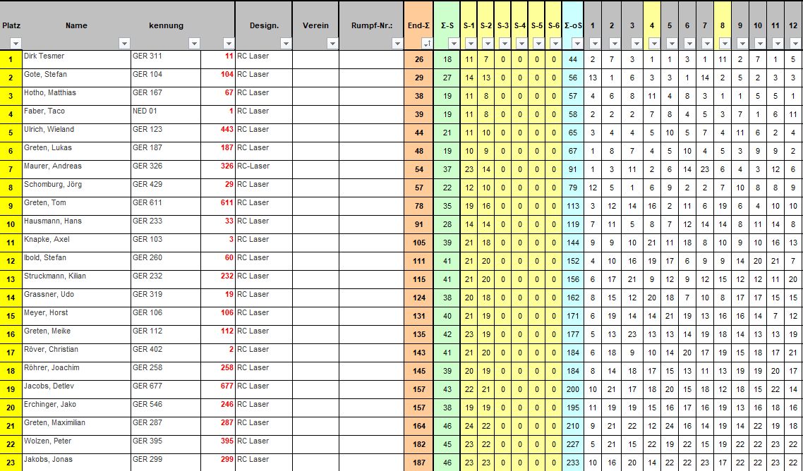 Es waren insgesamt 22 deutsche RC-Laser am Start. Das gibt Hoffnung, dass wir auch in Zukunft wieder größere Felder bei den RC-Laser-Regatten sehen werden.