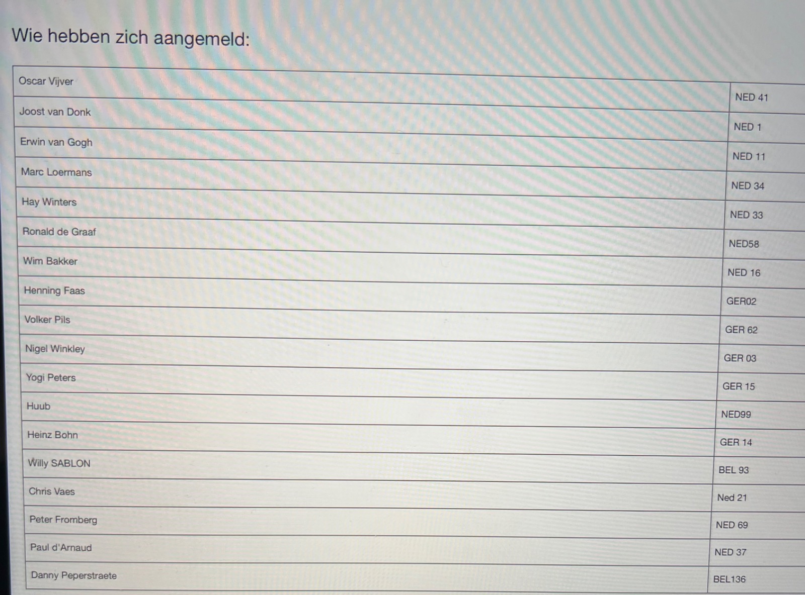 Hier die Teilnehmer: