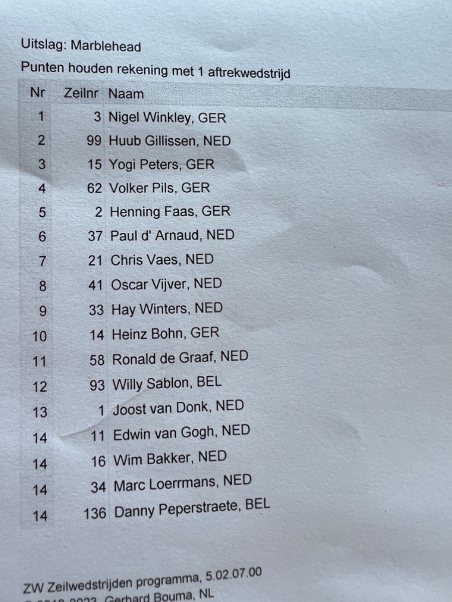 Wir sind 20 Läufe gesegelt, alle mit B und C1 Rigg.