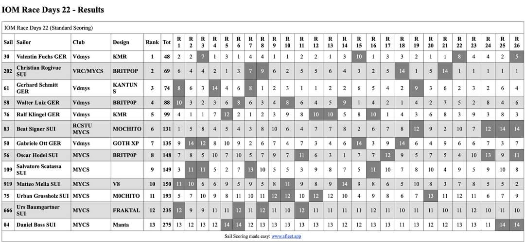 Es wurden 16 Wettfahrten gesegelt, geleitet von Urs Blum.