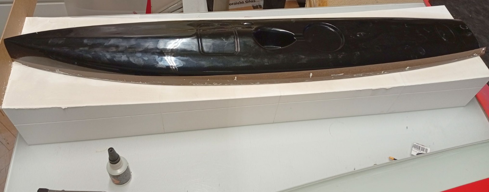 Ich will hier auch nicht groß auf den Formenbau und das Laminieren eingehen. Wenn gewünscht, kann ich das sehr ausführlich nachholen-will aber niemanden langweilen.