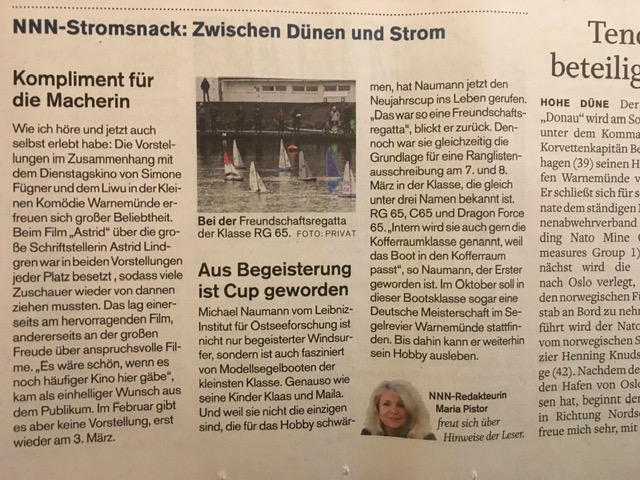 Weiter so!!! Ich freue mich auf die nächsten Regatten in Warnemünde.
