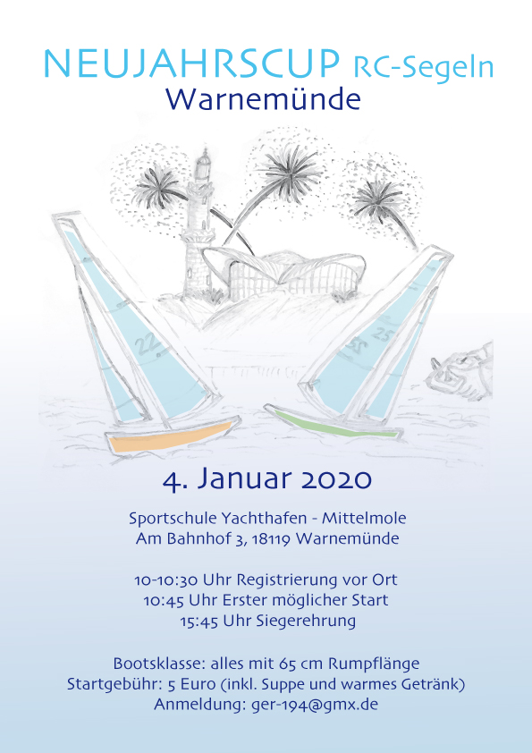am 4. Januar segeln wir in Warnemünde eine Neujahrsregatta für alle 65 cm langen Rümpfe. Ab vier DF65 erfolgt eine seperate Wertung, gestartet wird jedoch in einer Gruppe.