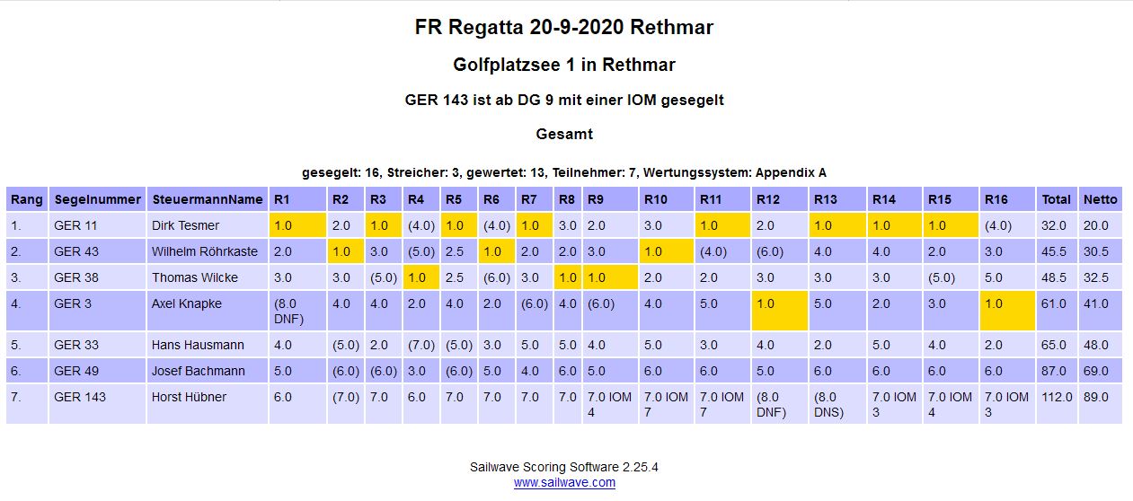 Freundschaftsregatta RC-Laser 20.September 2020 in Rethmar Ergebnis