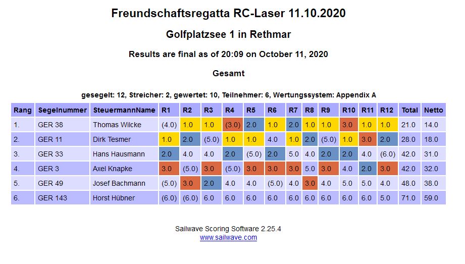Freundschaftsregatta RC-Laser 11.Oktober 2020 in Rethmar wurde erstellt von GER233