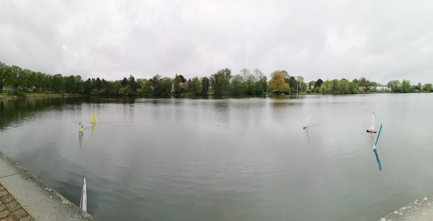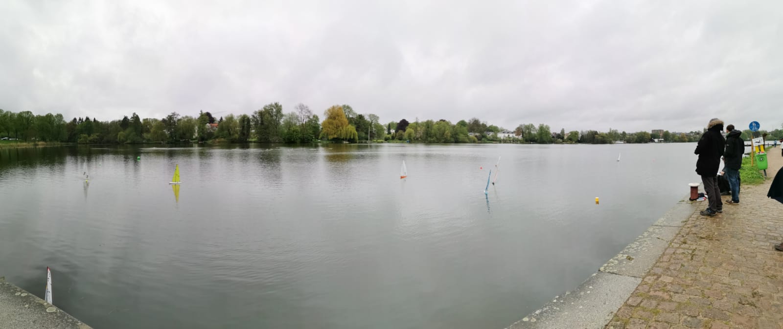 Herrentag 2021 im „echten“ Norden – „Schlingpflanzen-Riesenslalom“, Regen bis Niesel und Superleichtwind – RG 65 segeln an der Wakenitz in Lübeck.Das Match des Tages hieß „Langkieler vs. Kurzkieler“ und wer bleibt in einer der zahlreichen Schlingpflanzen stecken. Wir sprechen hier von 32-31 cm vs. 27-28 cm freie Länge. Jeden hat es irgendwann einmal erwischt und es gab schnell wechselnde Führungspositionen. Ausnahme Top-Favorit Patrick, das schlanke Rumpfdesign seiner Orca mit etwas höherem Tiefgang im Vergleich zu den anderen Shapes hing sehr häufig fest. Die Windstärke war so gering, dass die kleinste Berührung ausreichte die Schiffe zum Ruckeln zu bringen bis total Stillstand und warten auf die nächste Miniböe zur Befreiung.Wir nahmen es locker, allemal besser als am „große Jungs Tag“ zu Hause zu sitzen.