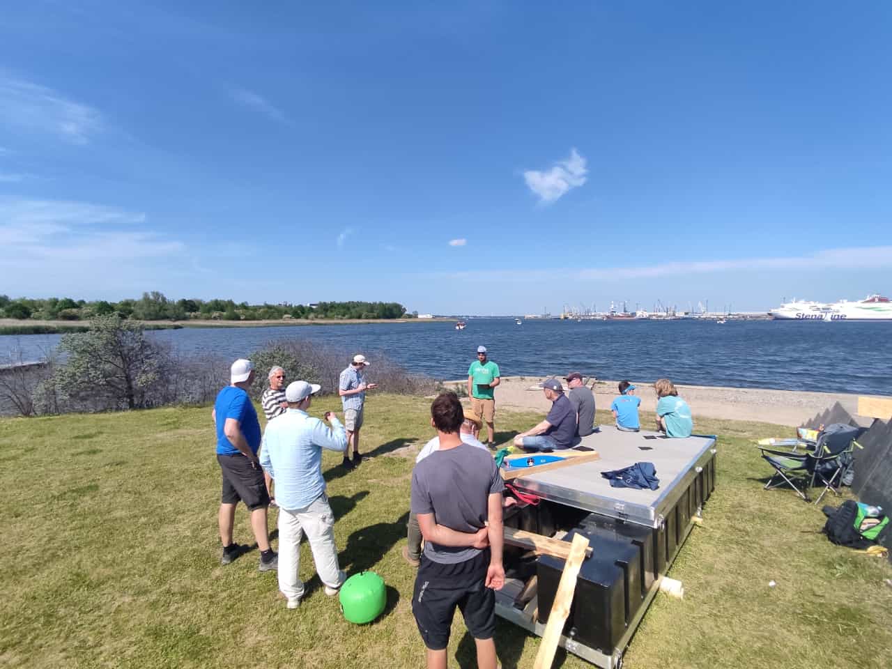 Ursprünglich war je nach Windrichtung die Regatta für den Stadthafen Rostock – Gehlsdorf oder Yachthafen Warnemünde Mittelmole geplant. Jedoch erfuhr ich Anfang der Woche, das auf dem Steg im Stadthafen Sportbootführerscheinprüfungen laufen. Am Donnerstag wanderte auch wieder das Bau-Ponton in den Yachthafen Mittelmole und zwar genau in die Segelzone. Eine verzwickte Situation und Suche nach einem alternativen Spot begann! Fränki (GER-235) als langjähriger Rostocker RC Segler stellte spontan den heißen Draht zur Chefin des Museumsschiffes im IGA Park. Freitag Nachmittag schnell den Spot besichtigt und alles geregelt. Nun konnte das Segelmatch losgehen ... puuhh!