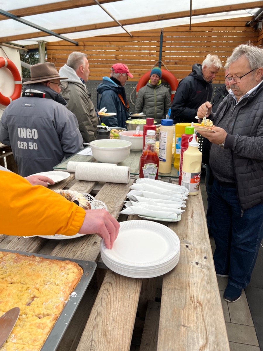 Vor Ort sind 15 M Boot Segler pünktlich am See bei Rainer erschienen.