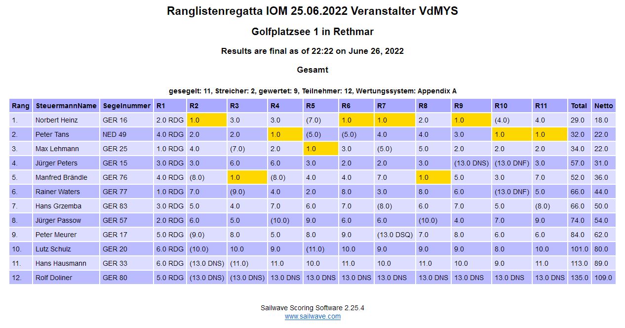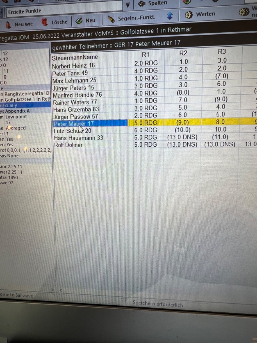 es waren 16 IOM Segler gemeldet, vor Ort waren wir denn 12 Segler.