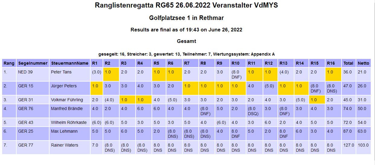 Von den 14 verbliebenen Seglern haben sich sehr kurzfrisitg vor dem ersten Start 2 zurückgezogen. Ja vielleicht hätte man da nochmal neu planen sollen. Nun ist es anders gelaufen, was aber zu sehr entspannten und fairem Segeln auf dem sehr engen Revier in Rethmar geführt hat. Und die Besten an diesem Tag haben gewonnen. In der AFM steht ausdrücklich, dass man die Entscheidung bzgl. der Gruppengröße von den örtlichen Gegebenheiten abhängig machen soll.