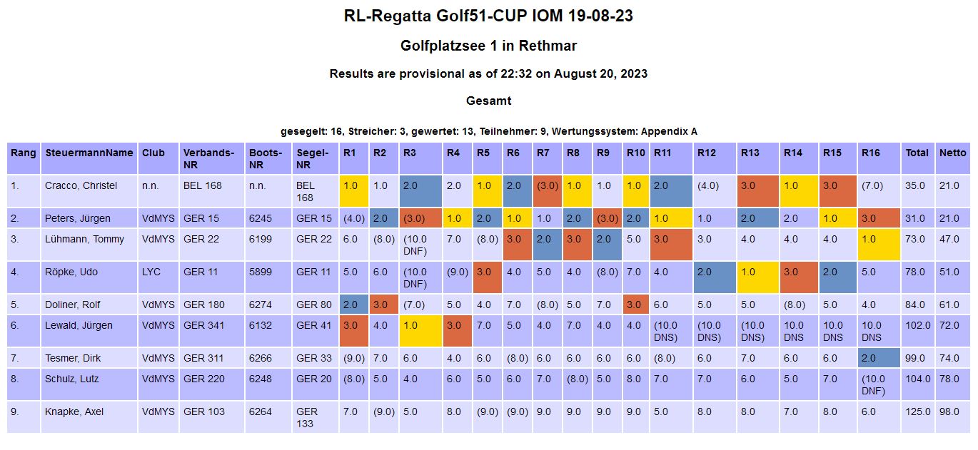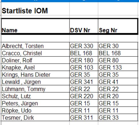 Hoffe nur das wir eine Saubere Ergebnisliste erhalten. Rumpfnummern bei IOM mit eingetragenem Besitzer bitte nicht vergessen. Hilft mir sehr bei der Auswertung.