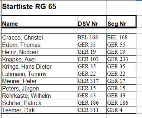 Hier jetzt die Startlisten zum Abgleich!