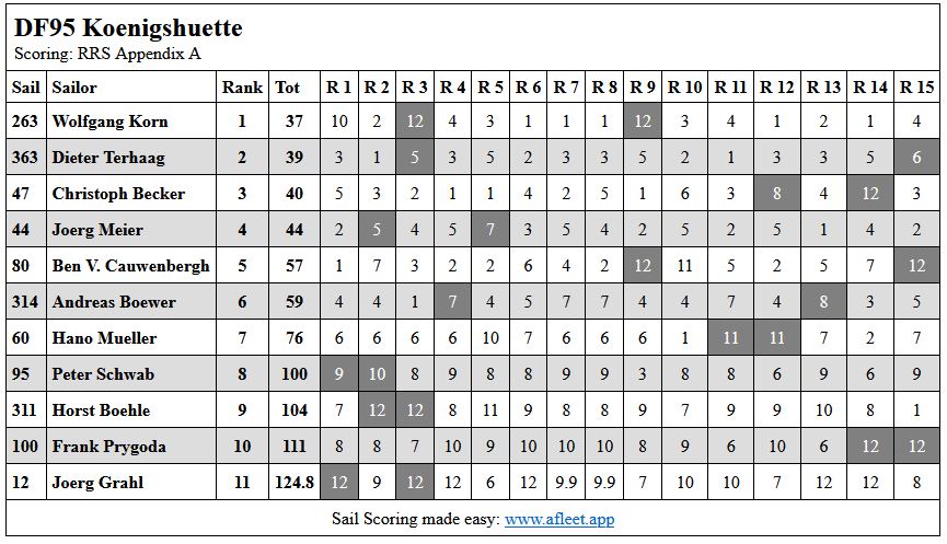 (lag vielleicht auch daran, dass acht von elf Seglern mindestens einen Lauf gewonnen haben, hab ich so auch noch nicht erleben dürfen).