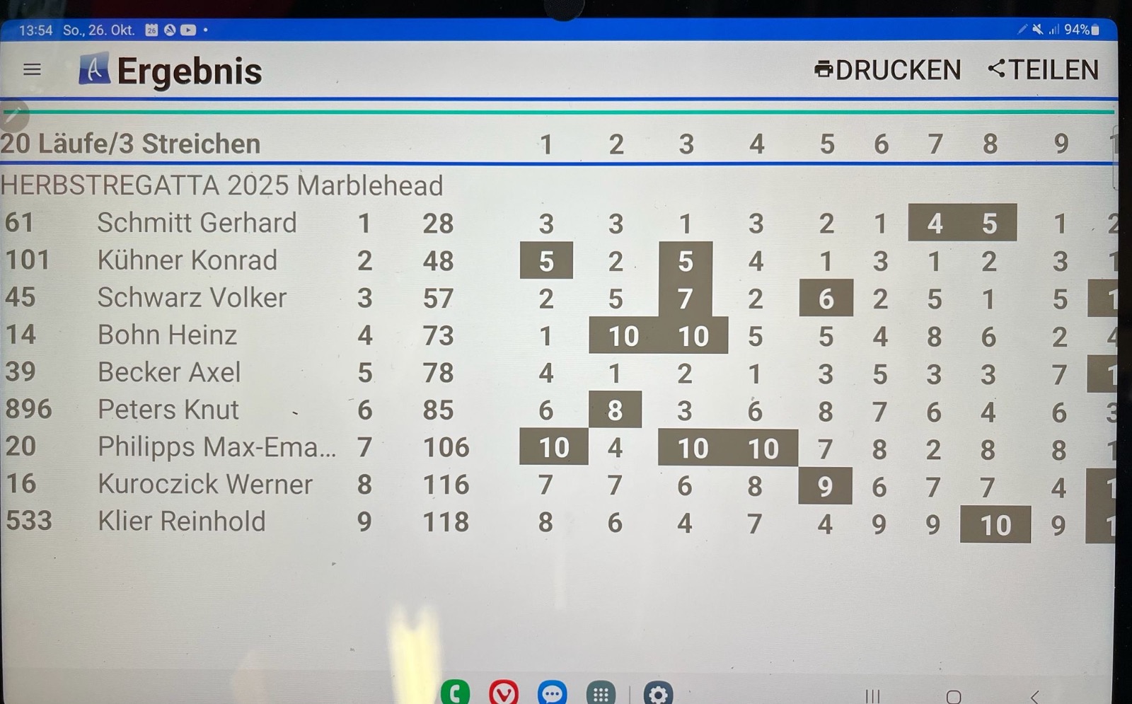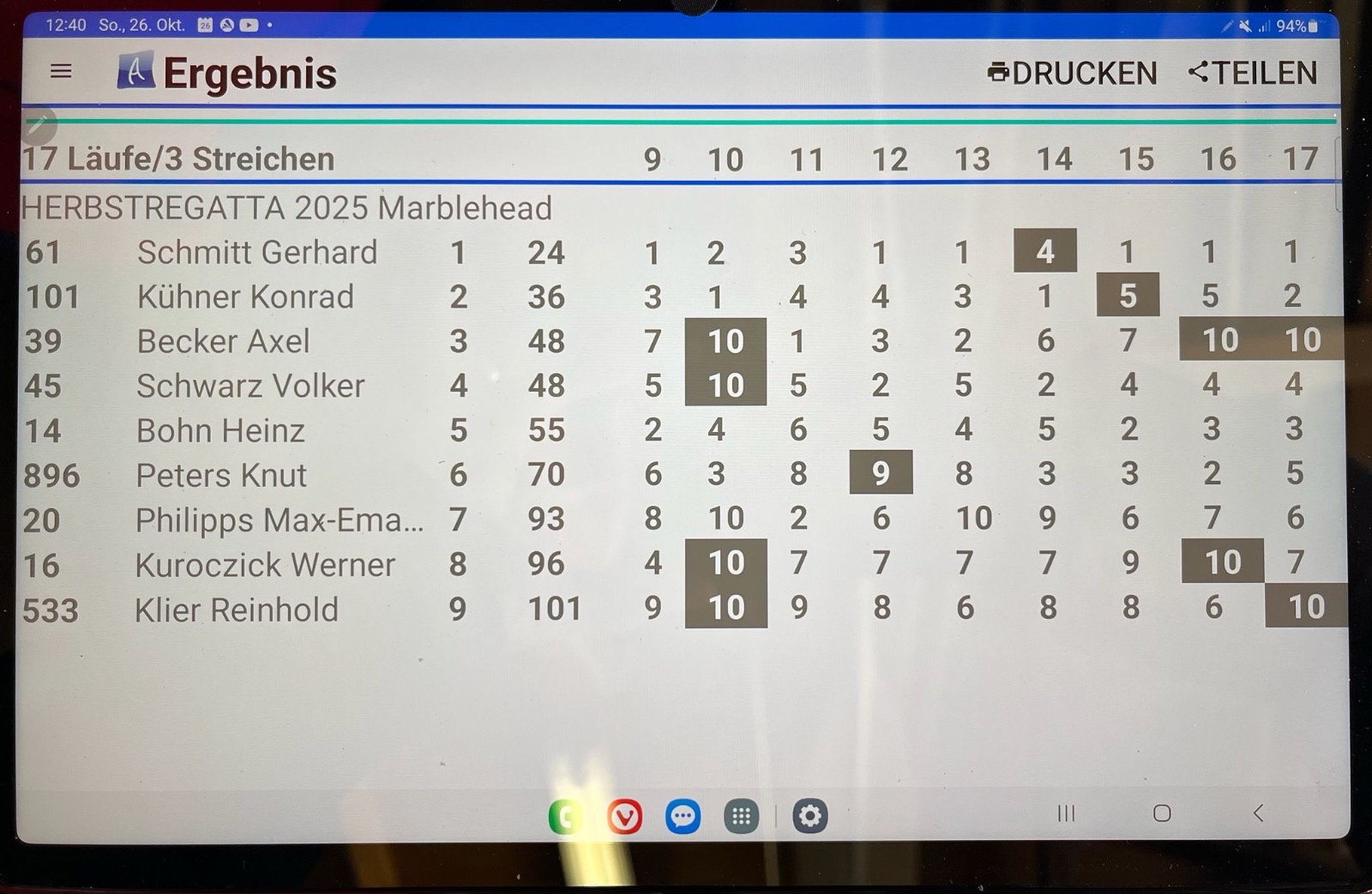 Schön, dass wir mit Heinz Bohn aus Jüchen und Knut Peters aus Berlin auch zwei wirklich weit angereiste Segler unter uns hatten. Allen Teilnehmern hat die traditionelle Herbstregatta am Feringasee wieder sehr gut gefallen. Nochmals vielen Dank an alle Ausrichtenden und Unterstützer – wir freuen uns schon aufs nächste Jahr!