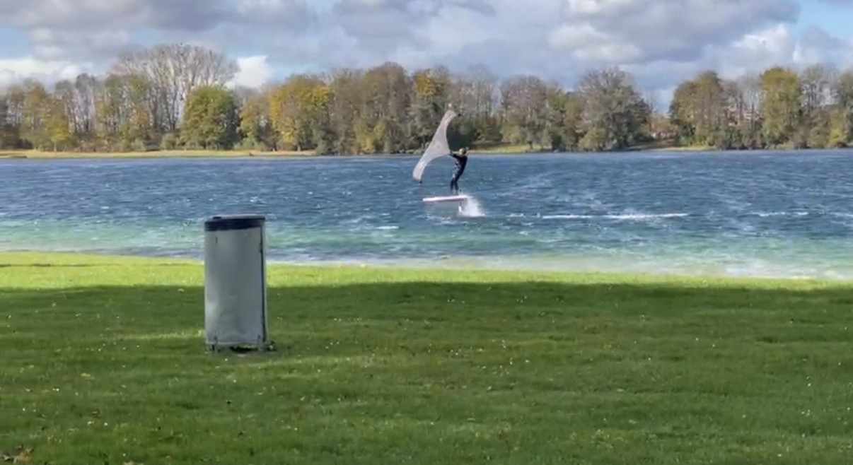 Auch der Sonntag war geprägt von heftigen Böen, die immer wieder über den See fegten. Da nicht alle mit kleinen Riggs ausgerüstet waren, zeigte sich im Feld eine große Bandbreite an Rigg-Größen. Axel Becker hatte für seine neue Pulsar 5e nur A- und B-Rigg dabei. Den letzten Lauf am Samstag und die letzten fünf Läufe am Sonntag sah er daher windstärkenbedingt lieber zu. Sein B-Rigg war mit einem sehr schönen, selbstgebauten Hemdsegel ausgestattet. Mit der von Frank Günder entworfenen Pulsar war Axel sehr zufrieden – da dürfen wir in Zukunft sicher noch einiges erwarten!