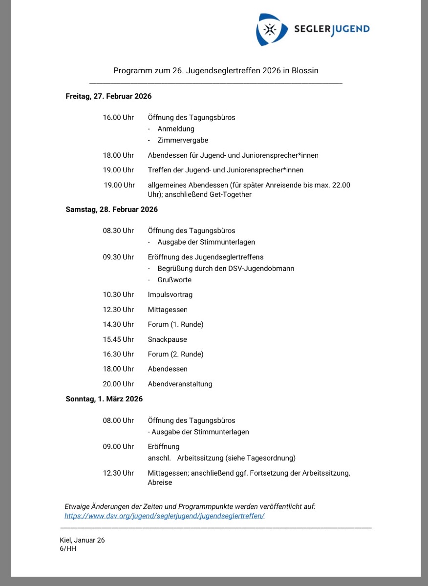 Wir wünschen allen Teilnehmern und Organisatoren viel Erfolg und eine tolle Zeit beim Jugendseglertreffen 2026 in Blossin